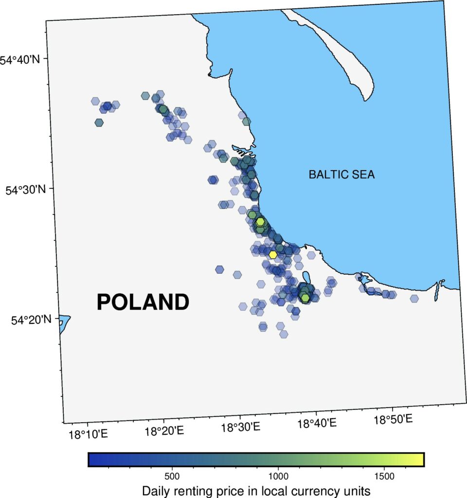 We got initial set of coordinates and short-term renting daily prices at each location.